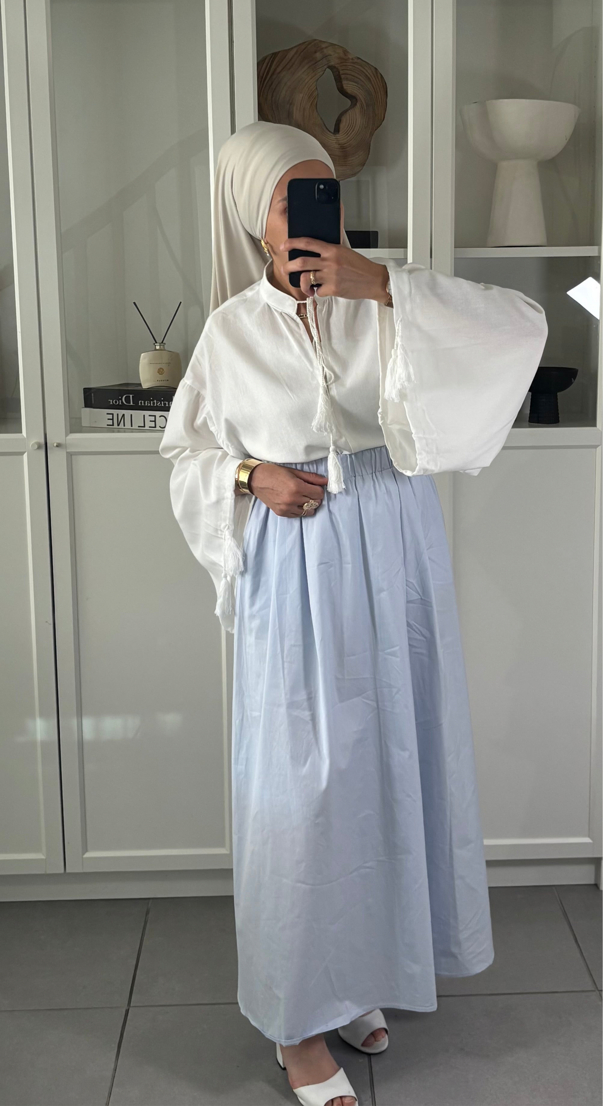 Découvrez la jupe ample 100% coton alliant légèreté, confort et praticité avec ses poches fonctionnelles.